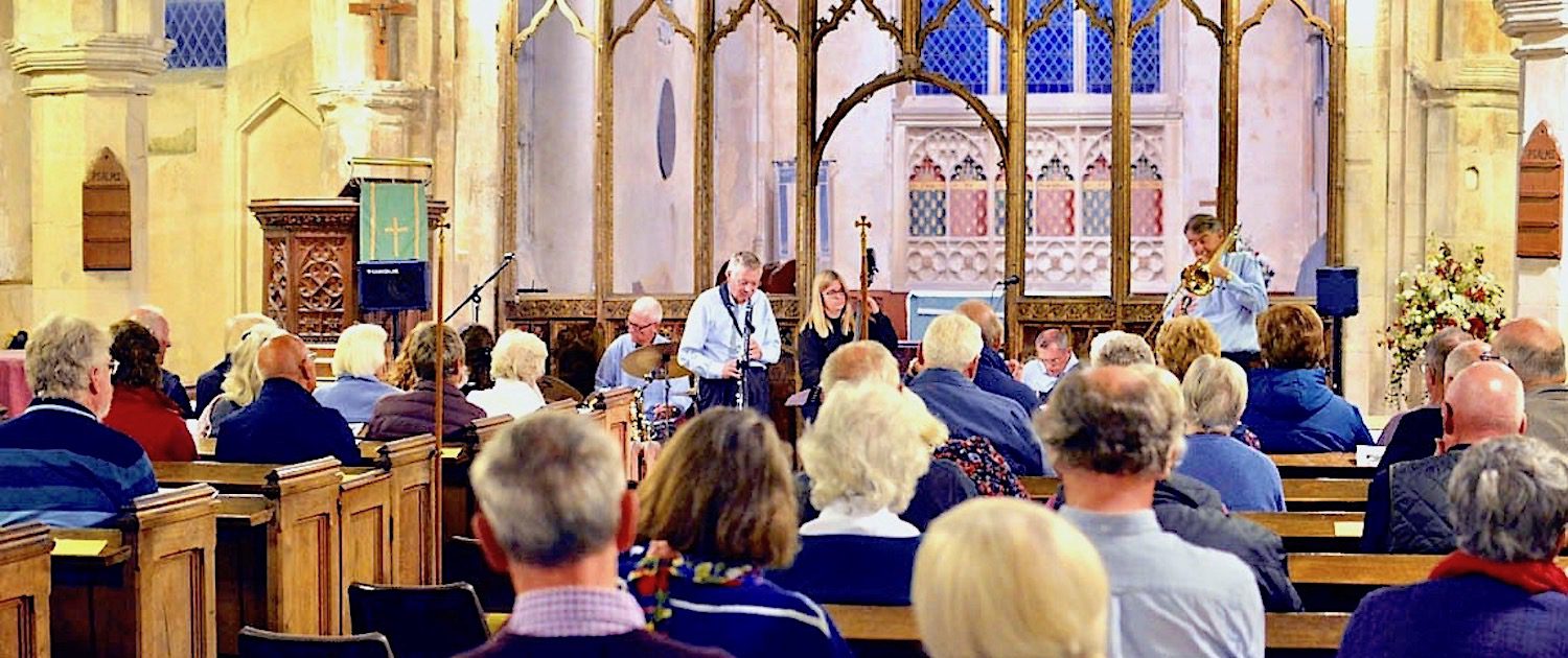 On many occasions they have been well received at Jazz at the Hub (the café/bar at Sheringham Little Theatre) and at St George’s theatre Café/Bar in Great Yarmouth, but at St Botolph church in Trunch The Norfolk Jazz Quintet played for the first time, raising money for St. Botolph’s conservation and restoration projects.