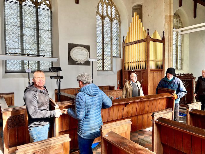 12th Mar 2026: six pews in the nave of St. Nicholas have been removed (and safely stored) to create space for a nice stage in front of the rood screen.